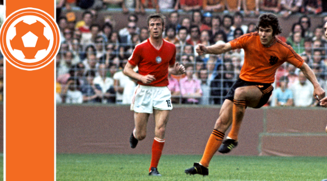 But what type of player was Van Hanegem?  He was a tough tackling midfielder and an excellent passer of the ball, hence the origin of his nickname De Kromme.  He was not the fastest but read the game very well.  Alongside Wim Jansen, Arie Haan and Wim Suurbier, De Kromme provided the physical side and aggression that allowed Holland to control the tempo of the game whilst Johan Cruijff’s leadership reinforced Rinus Michels’ Ajax philosophy of play.  The precision, variety and quality of Van Hanegem’s passing in the 1974 World Cup to Cruyff and Rep played a big role in enabling Cruyff to win the award for ‘Best Player of the Tournament’.