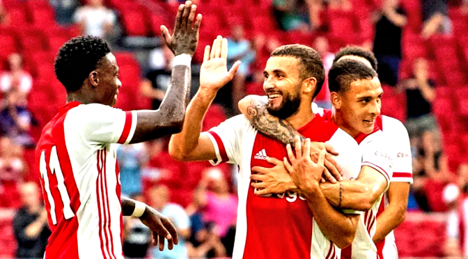 The Amsterdammers, with the maximum nine points, had enough quality to see off the challenge of Vitesse last weekend, despite being down to ten men for the second half.